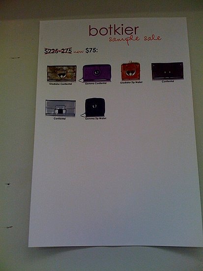 Botkier's sample sale was a quick and happy block from office, so I couldn't resist stopping by this afternoon. Blessedly, there was no line in sight though the sale itself had a hearty amount of women shopping. No long lines to pay and all merchandise is $75 to $275, including Monica Botkier's legendary TRIGGER BAG, available only in Chocolate Brown. I recently purchased a black leather Trigger at Luna Boston's Black Friday Sale and I've never been happier - it's the absolute best bag for style and organization.